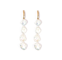 With this design of long earrings featuring amorphous real pearls, you achieve an elegant and contemporary piece. These pearls have a geometric shape, providing the earrings with a modern and sophisticated structure.